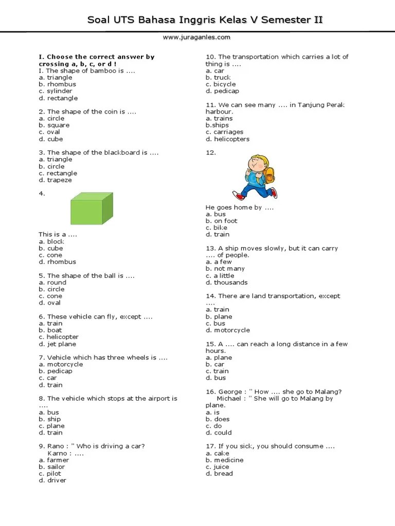 Contoh Soal Bahasa Inggris Kelas 5 Semester 2 / Soal Bahasa Indonesia Kelas 5 Sd Semester 1 2 Beserta Kunci : Choose the correct answer from these questions!